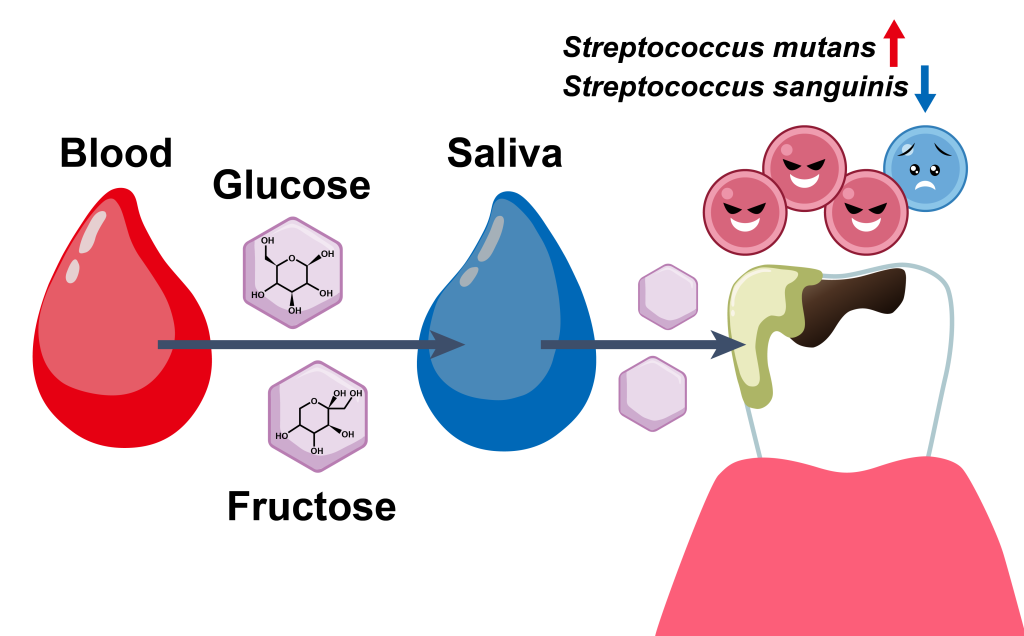 Researchers from The University of Osaka found migration of glucose and fructose from the blood to saliva drives oral microbiome dysbiosis in patients with type 2 diabetes, increasing the development of dental caries. This suggests that glycemic control could be an effective strategy for controlling dental caries in this population.